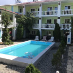 На территории: каркасный бассейн, лежаки, качели, мангал, водопад, автостоянка , а так же спортивный и детский уголок, дартс, бадминтон, ролики, нарды, компьютерная комната, гладильная доска, WI-FI, можно покурить кальян и поиграть в настольный теннис. Организуются экскурсии по Крыму.